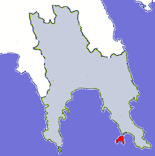 located south of Neapolis and north of Kythira Island in the Lakonia